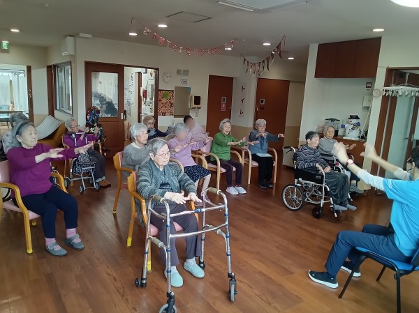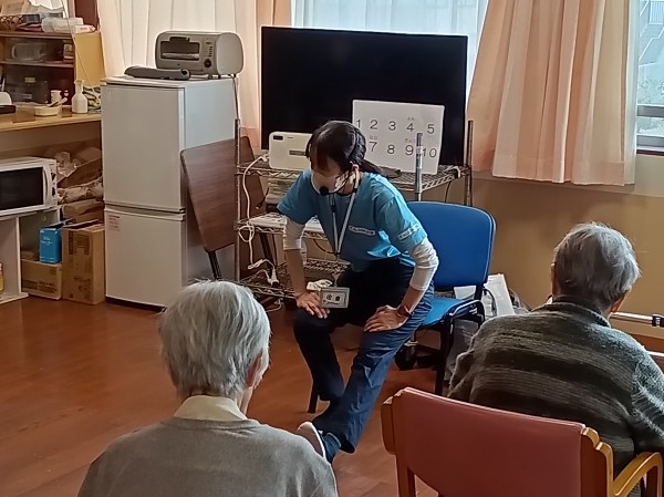 訪問ノーアは声を出しながら手足を動かし、脳を働かせることのより活性化を図る体操です。