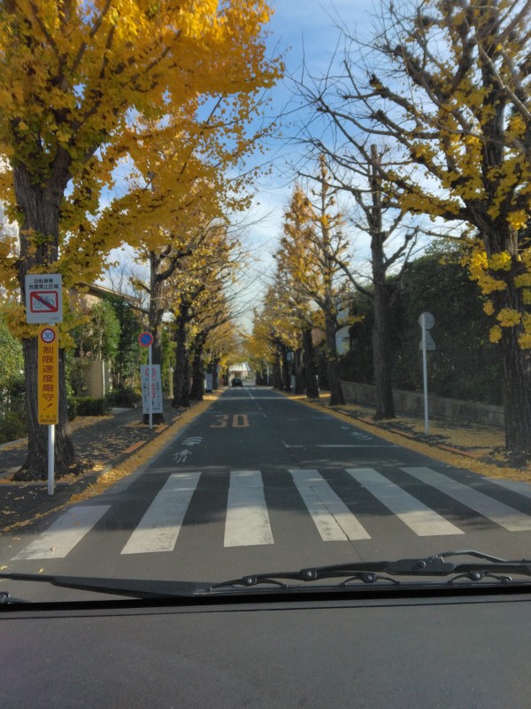 少し傾斜した道路なので、とても見通しが良く、銀杏の黄色の葉っぱが光り輝いています!