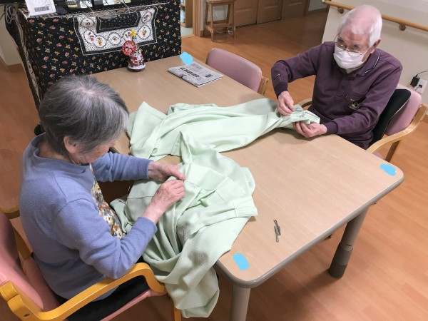 今日は大掃除のひとつ、皆さんのお部屋のカーテンを洗濯しましたので手伝って頂きました。