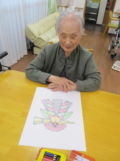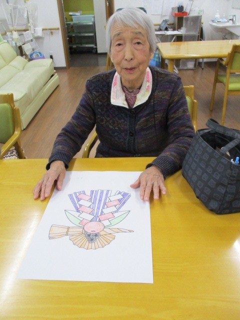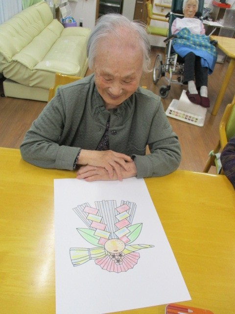 綺麗にお正月の塗り絵が完成しました(^0_0^) 嬉しそうですね?