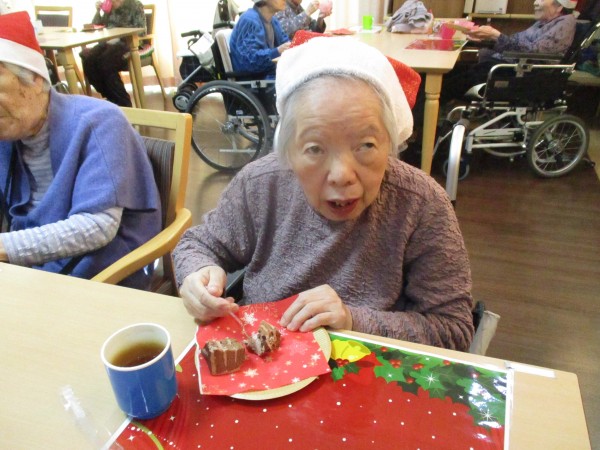 前回、クリスマス会の様子をお伝えしました。クリスマス会の終了後は、皆さんお待ちかねのクリスマスケーキ✨を召し上がって頂きましたので、今回はその時の様子をお伝えします(^^♪