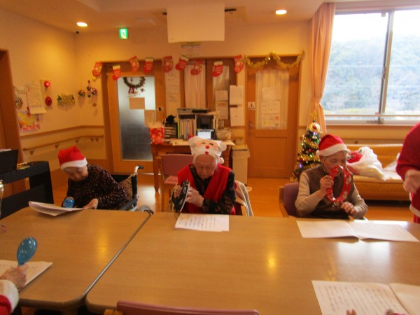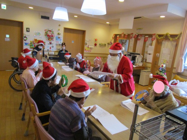 ご利用者様もスタッフもサンタ帽子をかぶりました。
