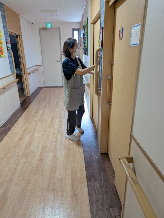 フロアの安全確認、残されている利用者様がいないか確認します