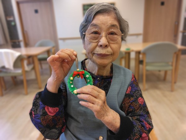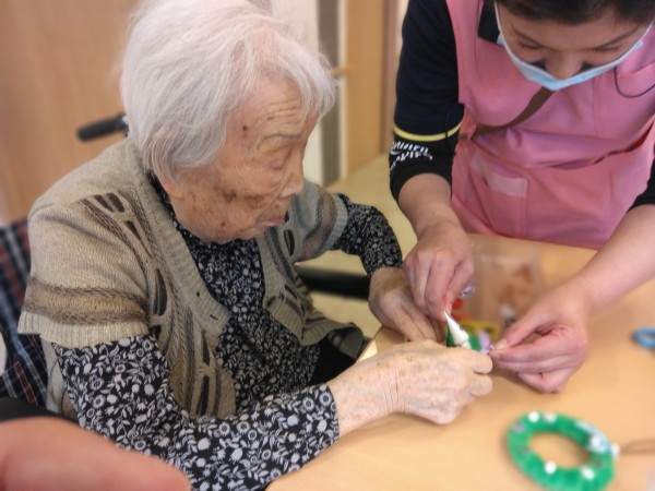 看護師さんと一緒に手先リハビリ リース作り
