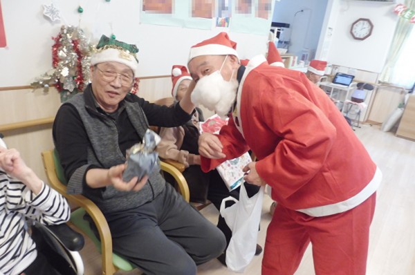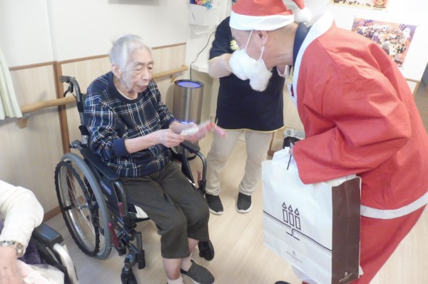 !(^^)! 職員サンタよりお1人ずつにクリスマスプレゼントを手渡ししました。(^_-)-☆