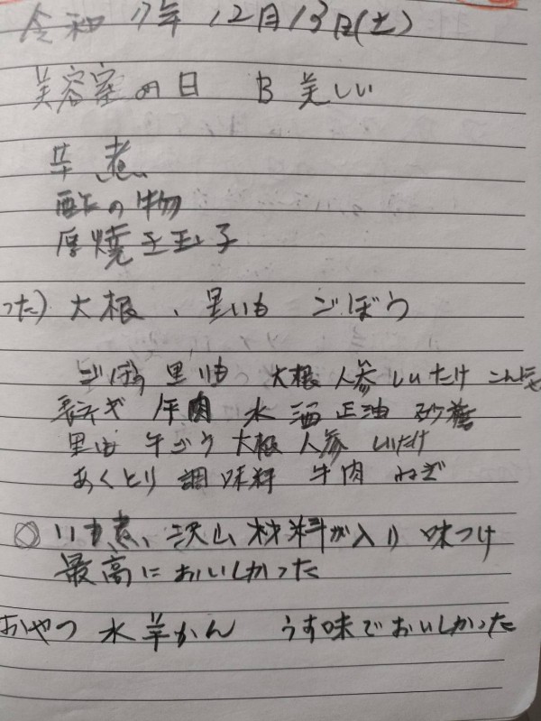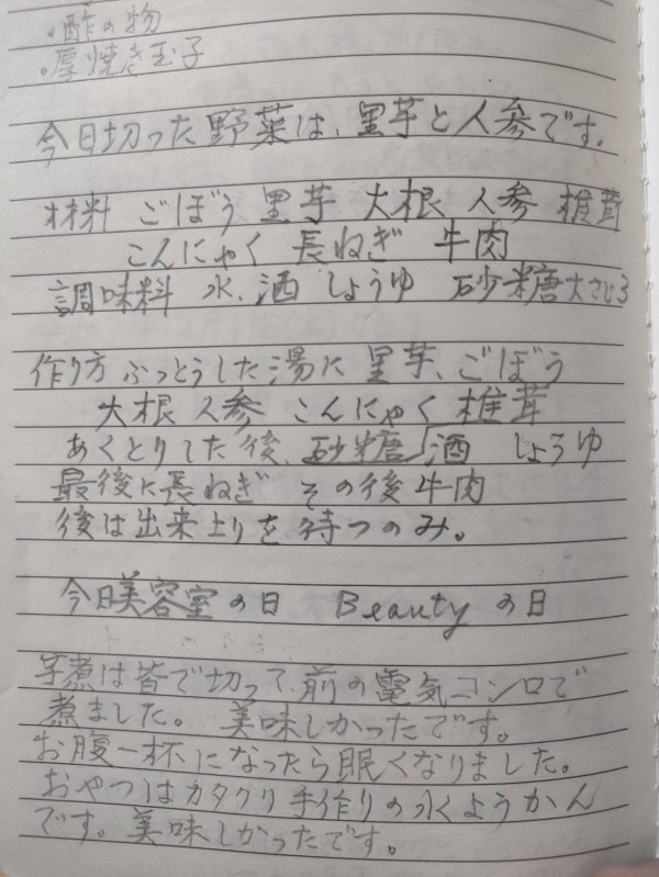 そうなんです。ここでは切っていただいた野菜などを思い出しながらノートに記入していただくのです(´▽`*)