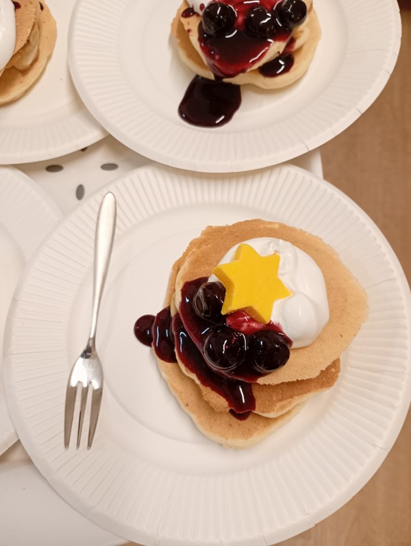 ホイップとチョコ、ブルーベリーソース、黒蜜、メイプルの中からお選びいただきました。