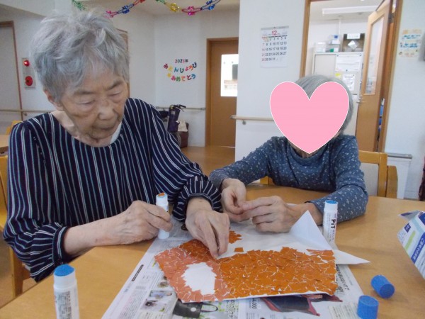 来年の干支に向けての工作、お洗濯物畳みのお手伝い、等々、和気あいあいと活動されていました。