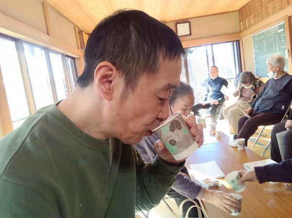 ティータイム中に、ボランティアさんのギター演奏に合わせて歌を歌いました♪