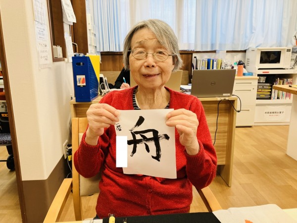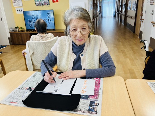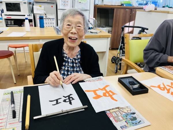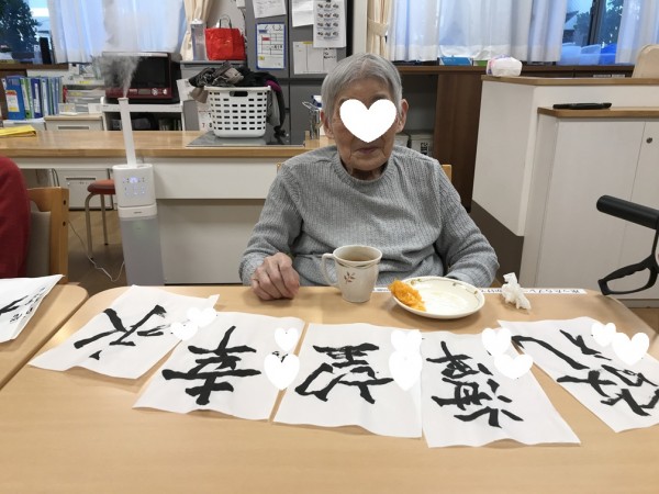 普段は、体を動かすレクが多かったりもしますが、この日は習字レクを皆さんで開催しましたよ~!文字の大きさなど、皆さんそれぞれ性格が出ますね~!