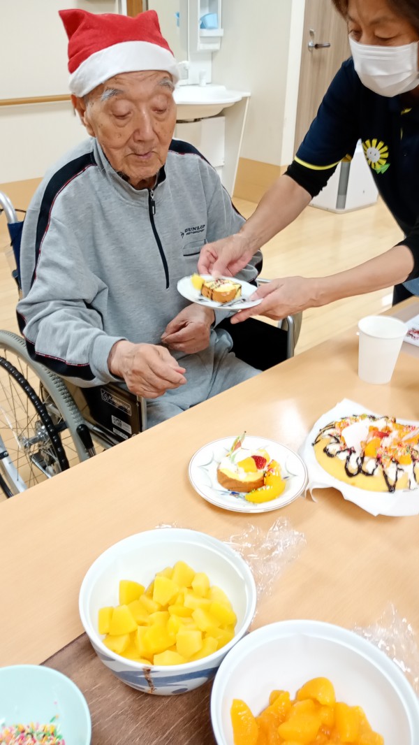 利用者様ご自身でクリスマスケーキ作りをしたり、普段あまり関わることが少ない1階と2階のご利用者様同士の歓談など素敵なクリスマス会になりました。