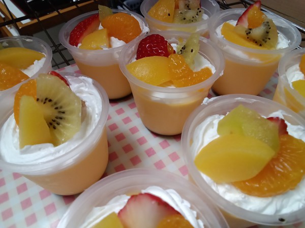 おやつにはプリンアラモードを食べました‼