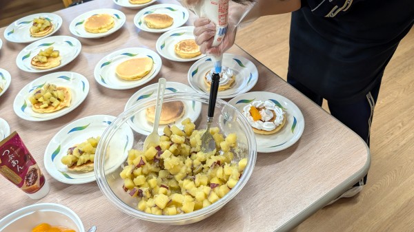 さつまいものパンケーキとみかんとホイップクリームのパンケーキ作ってくれました♪