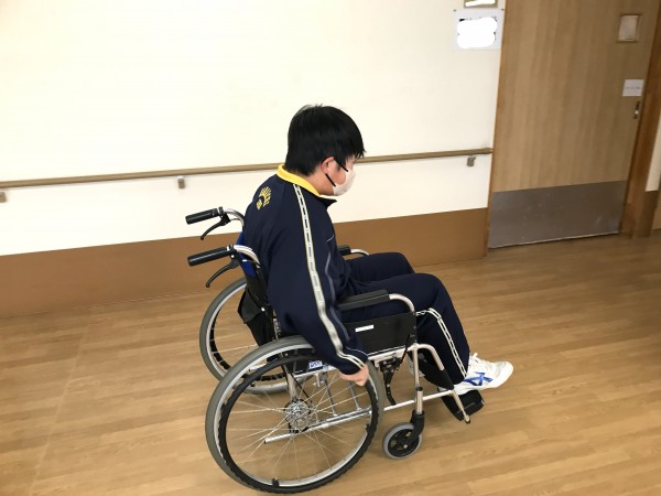 ホーム長から車イス使用時の注意点等を口うるさ、、、優しく丁寧に!!説明してもらい