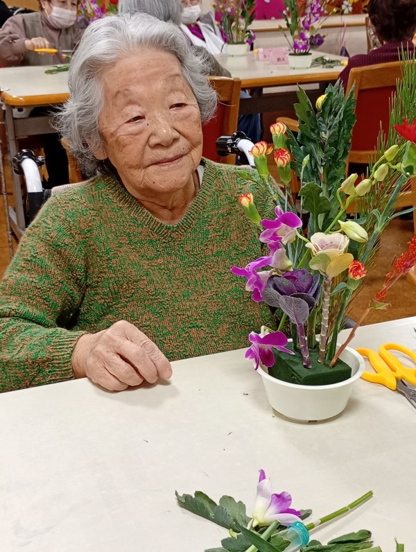 今回は、1Fデイサービスと合同でフラワーアレンジメントを行ないましたので、その様子をお届けします。