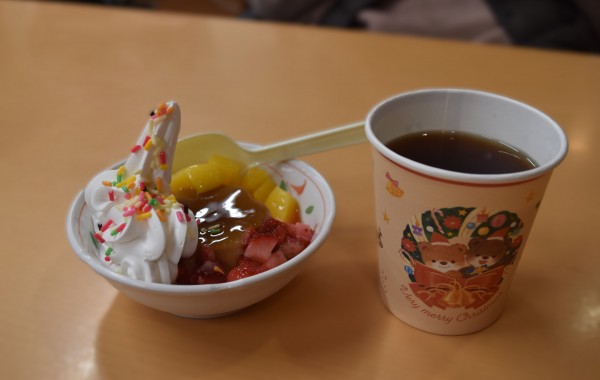 各階に戻り、「スペシャルプリンアラモード」のおやつに舌鼓♫
