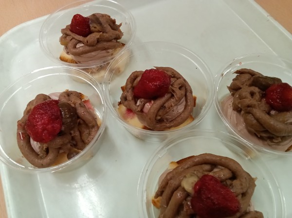 今年の材料はベースにカステラ、チョコクリームにはちみつ、栗をペーストにして