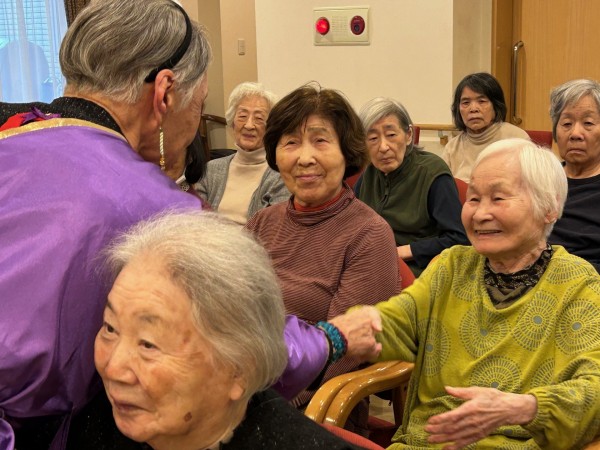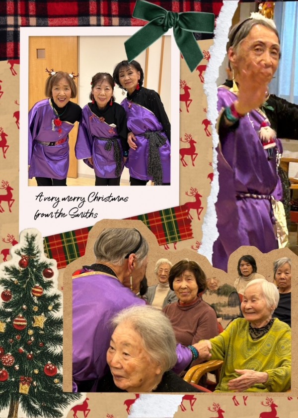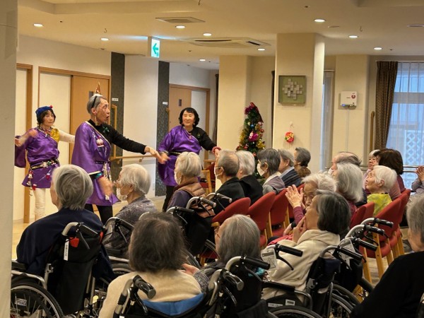 また、クリスマス会では、舞扇様(ボランティア)による素敵な演出を加えた民謡や舞踊、