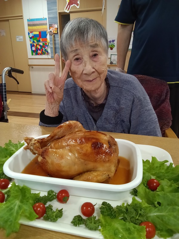 豪華なローストチキンとケーキ!
