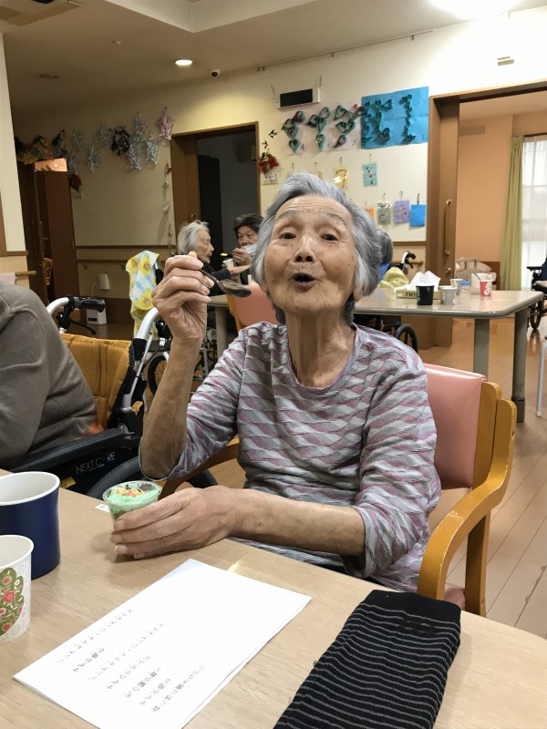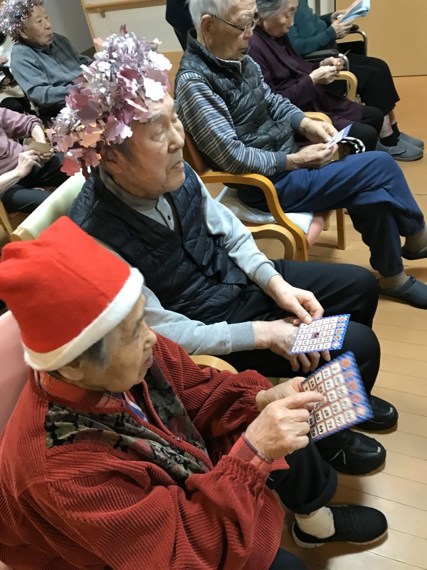 ビンゴ大会(プレゼント付き)からの、ご自分のフロアーに戻りおやつタイム(手作り)です!!