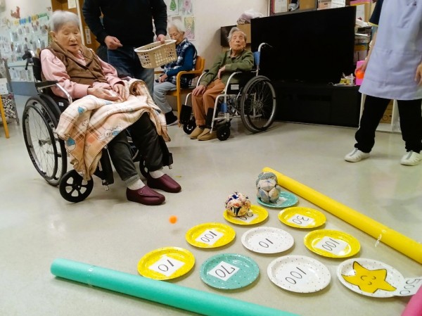 ボールを投げて入ったお皿の得点をgetできる遊び!