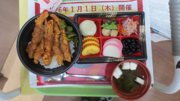 1月1日、今年初のイベント食「えび天丼&おせち」がありました。