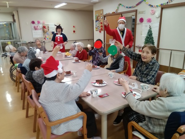 今年最後の行事Xmas会おやつ編デス(^_-)-☆クリスマス会のおやつと言えばやはりケーキしかないですよね!やはり1番の盛り上がりでした(^^♪並べた順にすでに口にほうばっている方もいらっしゃいました。また、イチゴが甘くって大好評でした。ご入居者様が喜んでいただいた事が何よりのご褒美デス❤