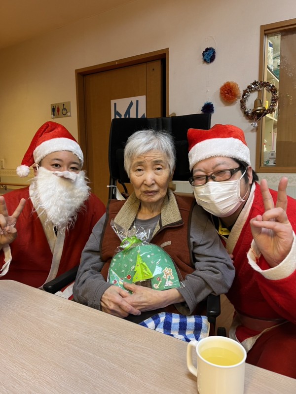 中村ホーム長扮するサンタさんからご利用者様の皆様にクリスマスプレゼントが