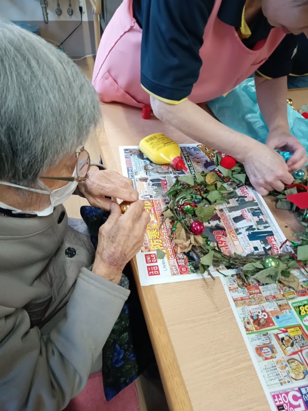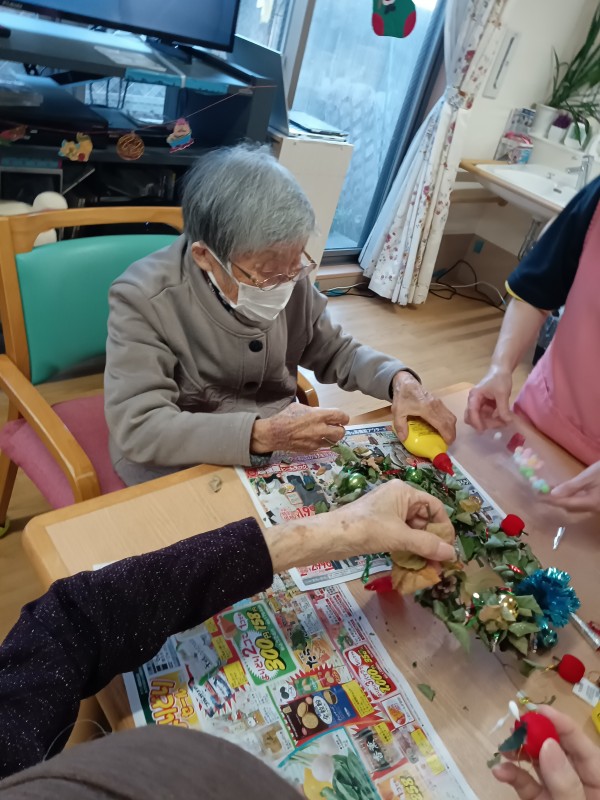 悪戦苦闘しながら可愛いリースが出来上がりました(^▽^)/
