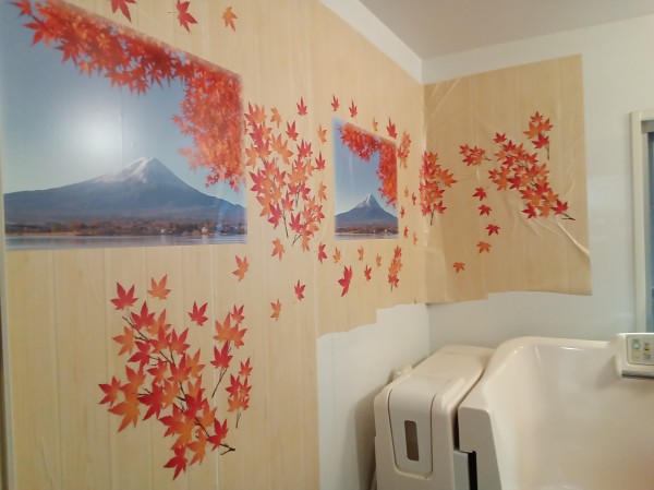 みなさん、いつもとは違う浴室を見て、キレイねぇとか、温泉みたいなど口々に感想を言ってくれましたヽ(^。^)ノ