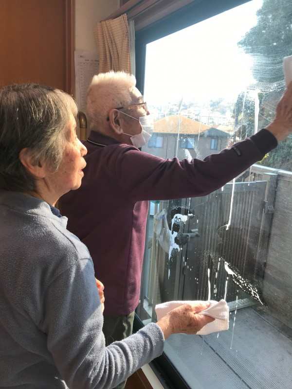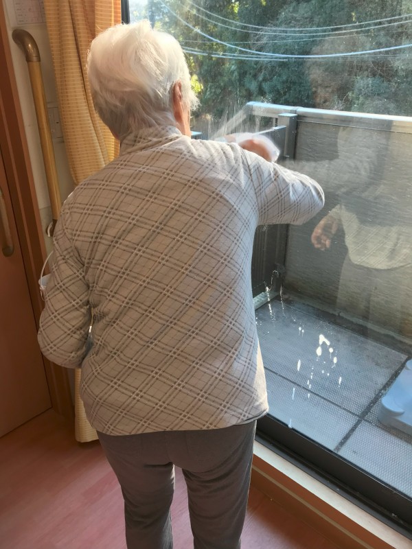 今日は前回に引き続き、天気もいいので窓ふきをお願いしました。皆さん一生懸命、きれいにガラスを拭いて下さりとても感謝しております。