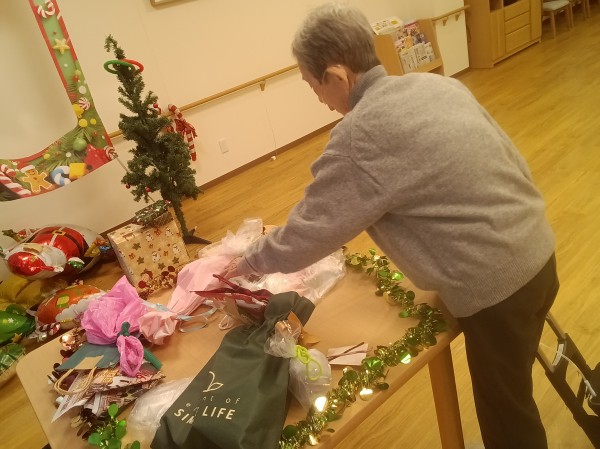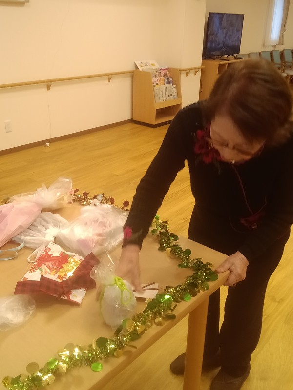 ご利用者様「あのね、今度クリスマスパーティーするのよ。プレゼント用意して交換しようと思って。楽しみなのよ~」