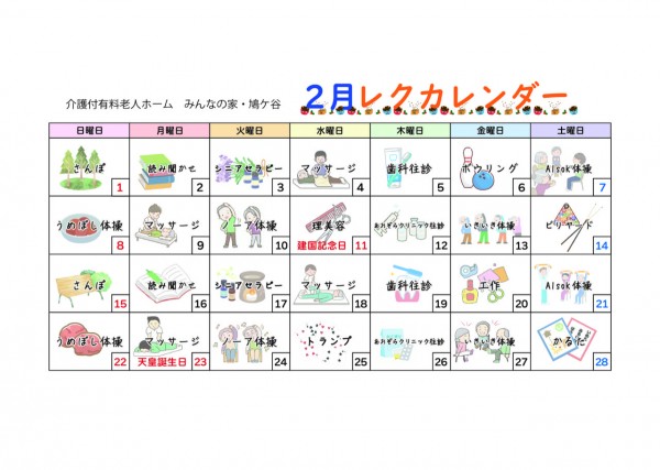 2月のレクカレンダー