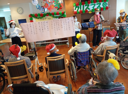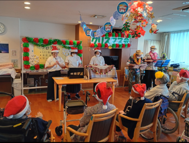 先日クリスマス会を行いまして、職員たちによる演奏を披露させていただきました!
