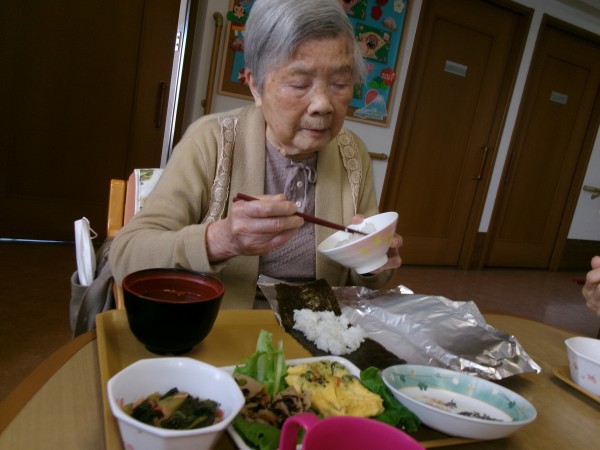 皆さん各自でおにぎりを握って、みんなで美味しく