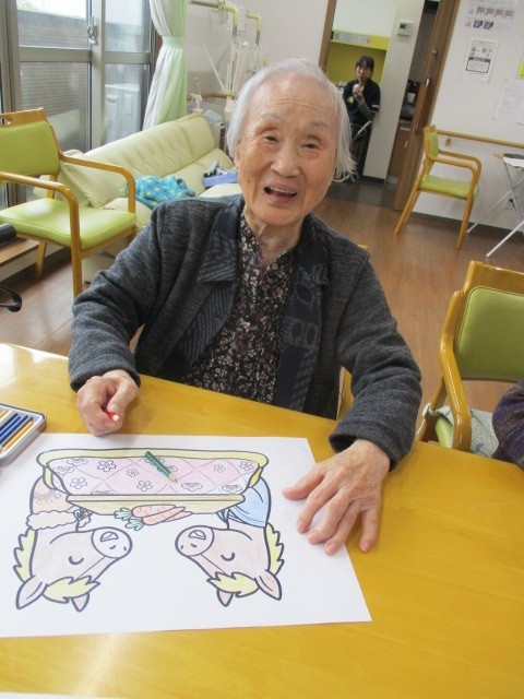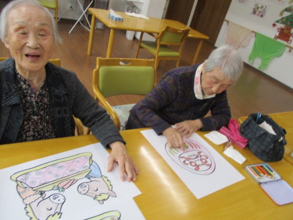 今日は2階でお正月用の塗り絵を行いました。 そのご様子をお知らせいたします!!