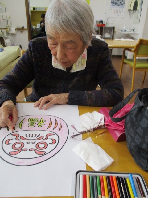 来年の干支・午の絵やダルマの絵等の塗り絵を行っているご様子です( ^ω^)・・・ 楽しまれながら塗っておられました(^0_0^)