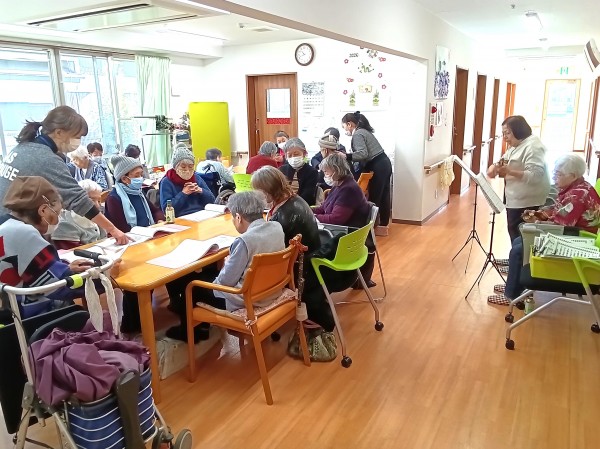 お正月の歌や昔の歌を色々とみなさまとウクレレに合わせて歌っておられました(*^_^*) 楽しいひと時をお過ごしになられました。