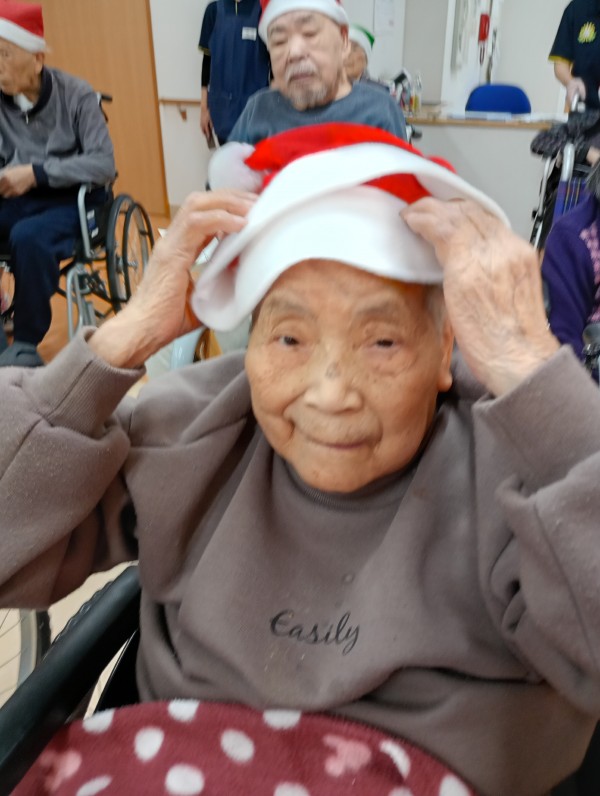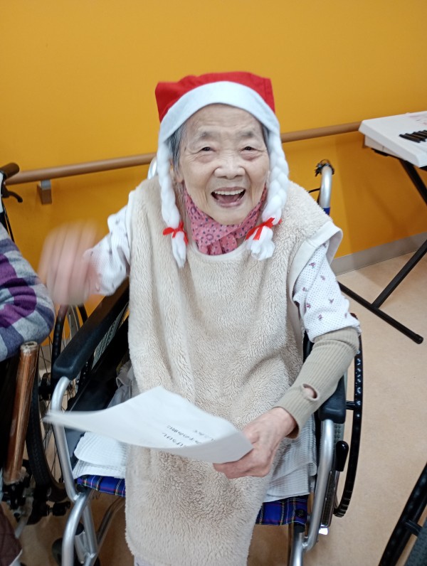サンタ帽を被って入居者様たちも笑顔で歌ってくださいました。