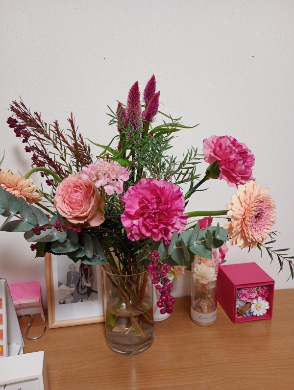 今回もこのご利用者様にぴったりの可愛らしいピンク色のお花が!!素敵!!