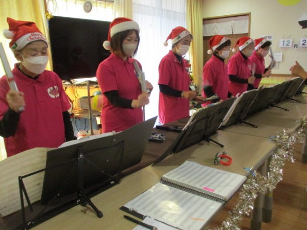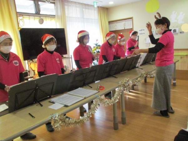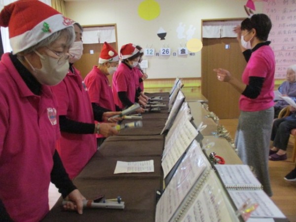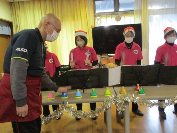 職員も参加ベルを奏でました(^_^)/~ありがとうございました。来年も楽しみにしております。 ご覧いただきありがとうございました。ケアスタッフでしたm(__)m