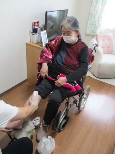 お話しされながら楽しまれておりました(^0_0^) 足の浮腫みが取れた感じがしますと嬉しそうに話した下さいました。