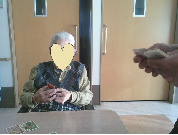 「ん~」と、かるたを前に悩むご利用者様(*´ω`*)‼