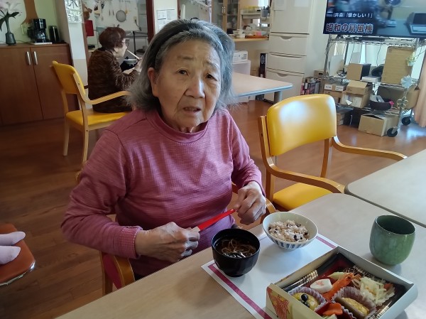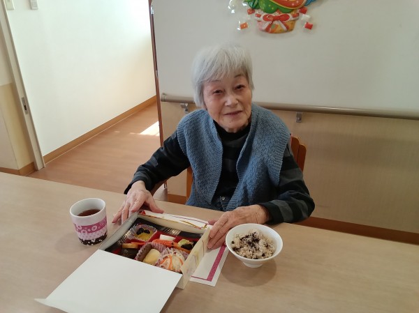 赤飯、お吸い物と一緒に食べてもらいました。