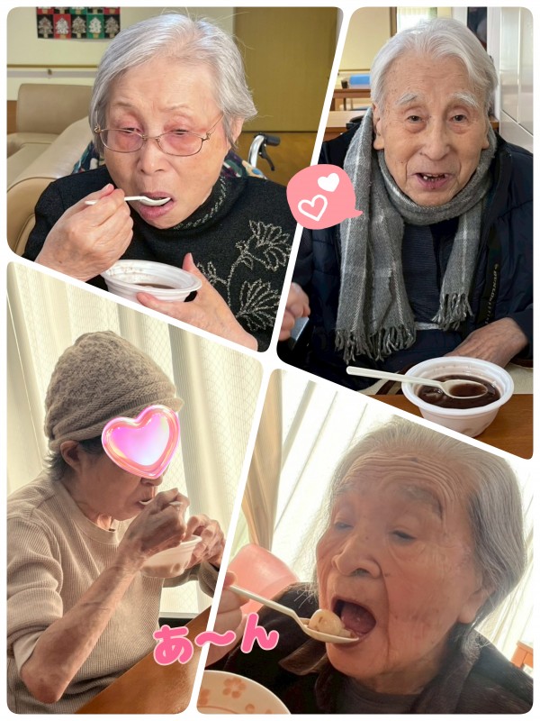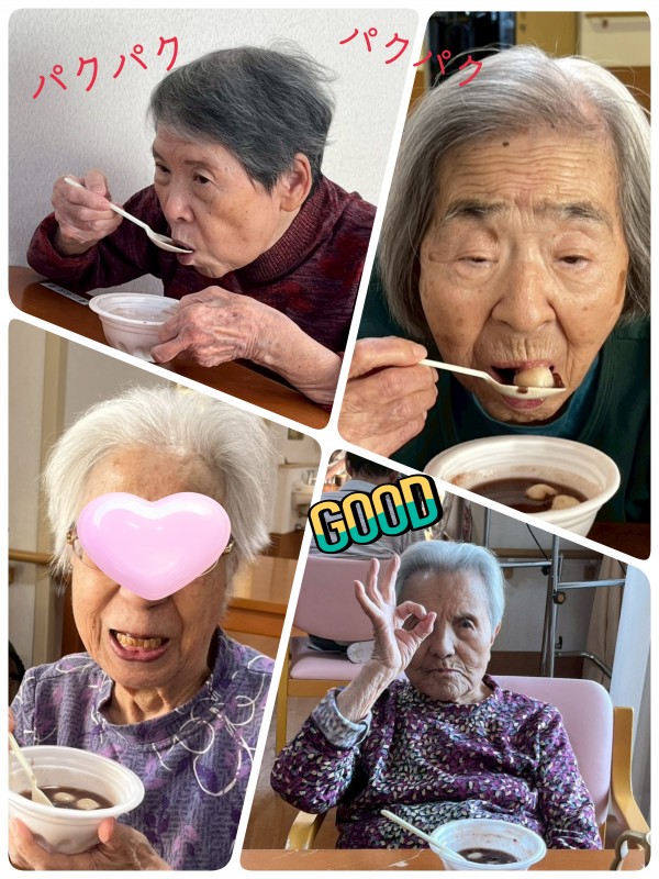 前日から、仕事の合間をぬっては大鍋に向かいコトコトとお汁粉作り。入居者様のためならエンヤコラ〜♪