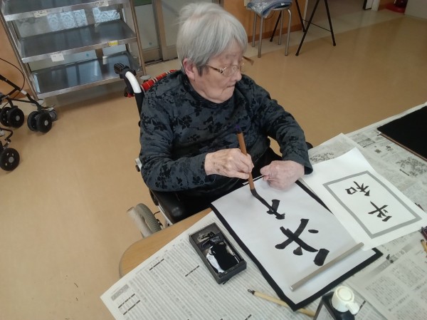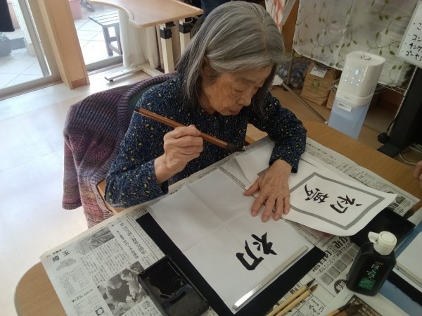 筆を持つととても真剣な表情で取り組まれて