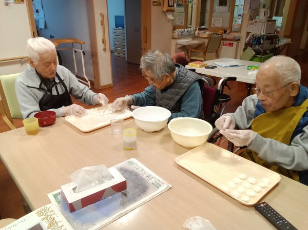 お汁粉用の白玉粉をこねて~こねて~まるめて頂きました!