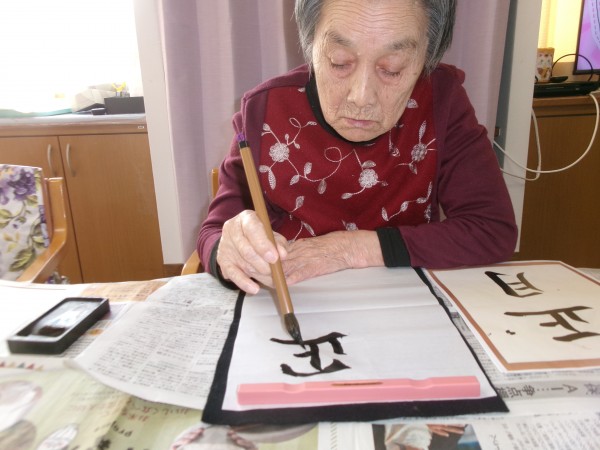 書きはじめると真剣な表情で
