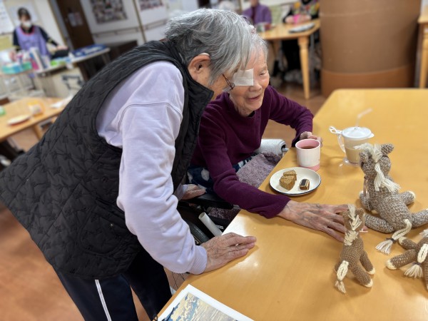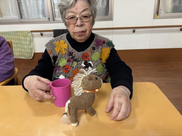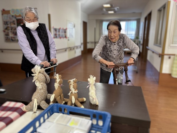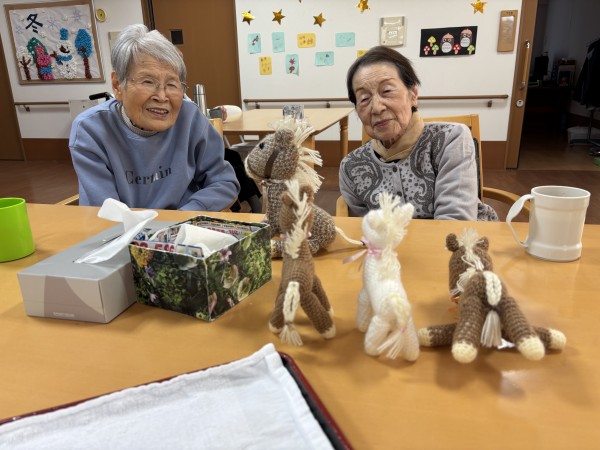 今年の干支は午!面会中のご家族様が、「これよかったら施設に飾ってください」と素敵な編みぐるみを持ってきてくれました!なんとその利用者様が編んだものですって!クオリティの高さと見た目のかわいさで利用者様も職員もメロメロ!