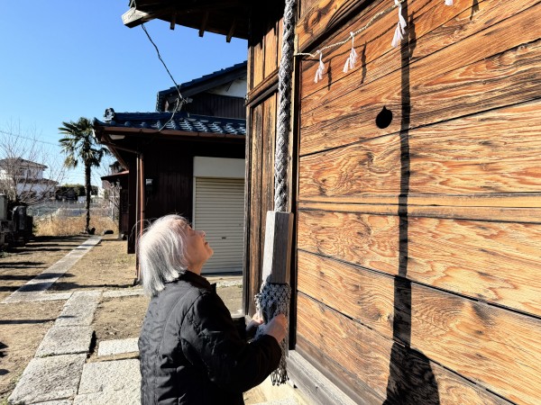 新方川で身を清め、神社へと向かいます。道中、太陽が顔を出し、北風も止みます。